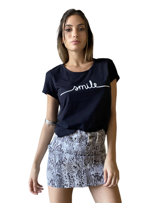 Remera manga corte cuello redondo de jersey algodon estampada.